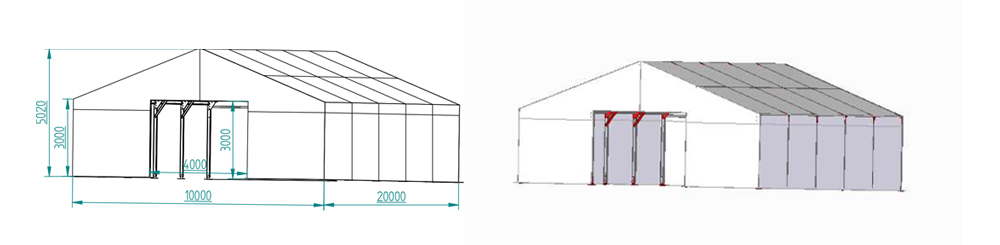 Obvyklá bočná výška dodávaného párty stanu je 2,5 metra. Je možné ju však upraviť podľa požiadaviek zákazníka.