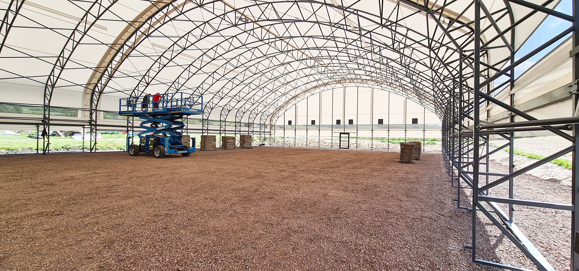 Montovaná hala z ľahkej oceľovej konštrukcie typu UT. Slúži ako jazdiareň pre kone v obci Kněžmost.