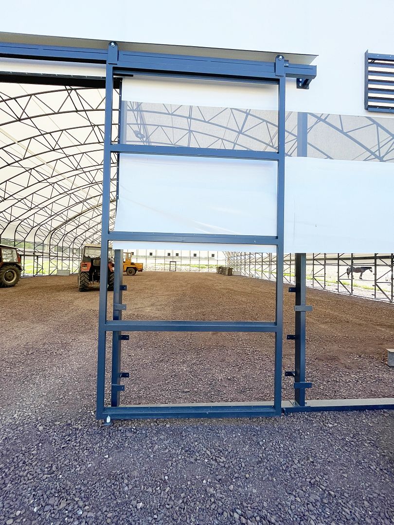 1 ks posuvný bránový rám 3500 mm × 3500 mm, umiestnený v čele haly