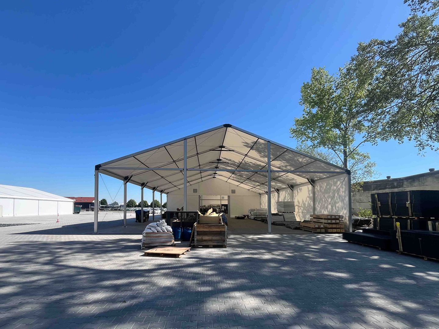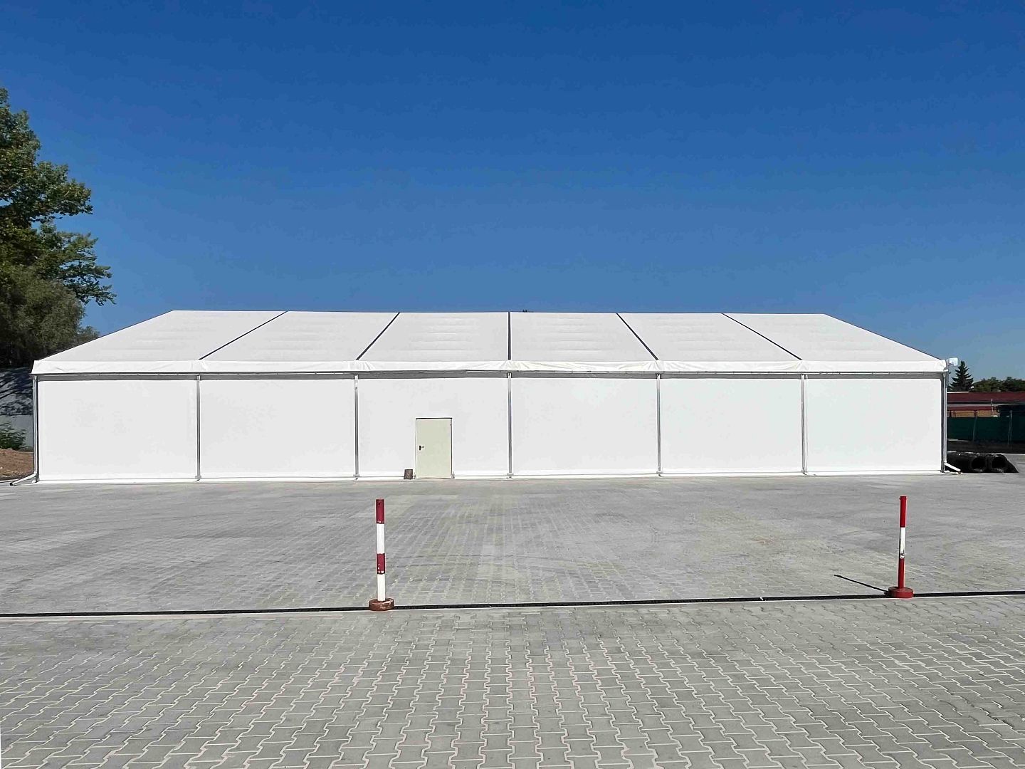 Ľahká stanová hala slúžiaca ako skladovací priestor.