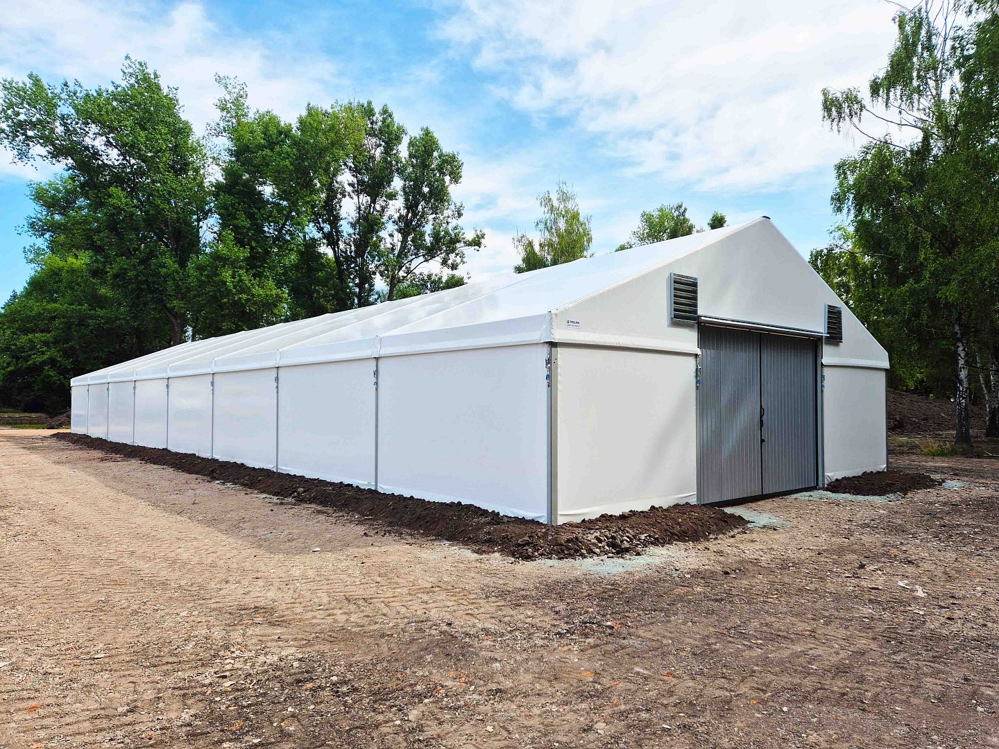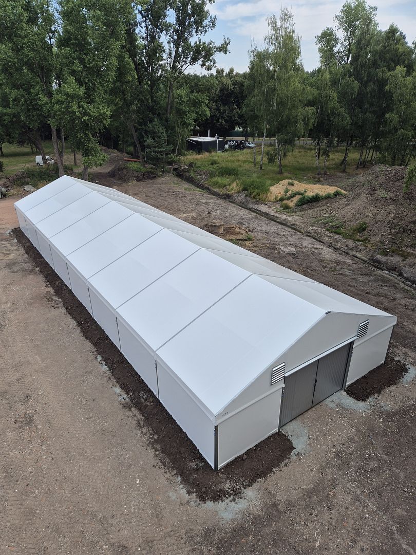 Ľahká stanová hala slúžiaca ako skladovací priestor.