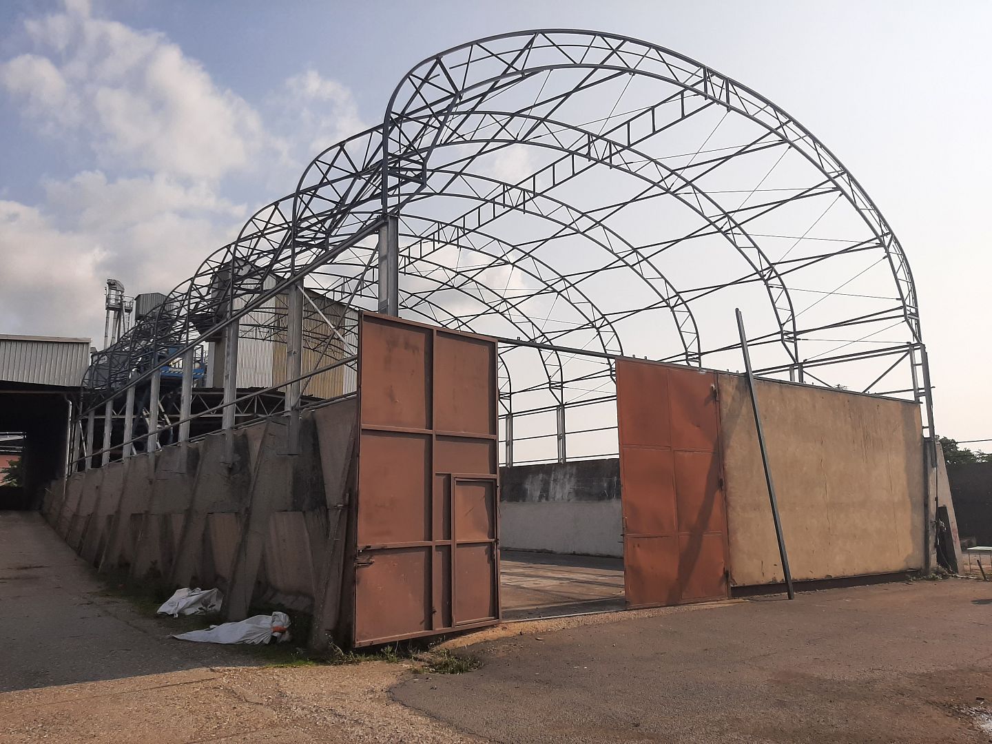 Zastrešenie silážneho žľabu ľahkou oceľovou konštrukciou typu UT, ktoré stojí vo Veľkých Hošticiach v poľnohospodárskom areáli spoločnosti Hoštická a.s.