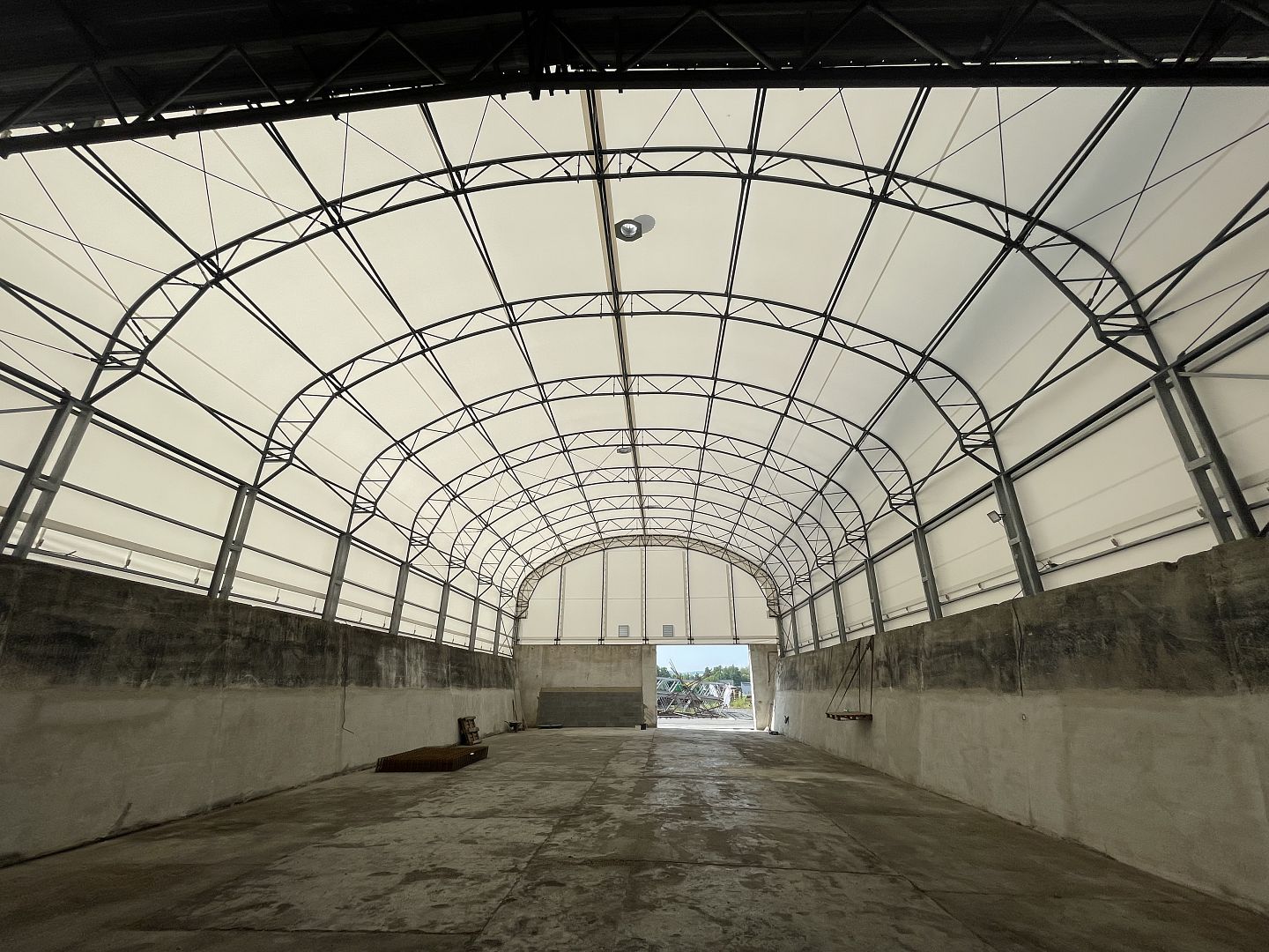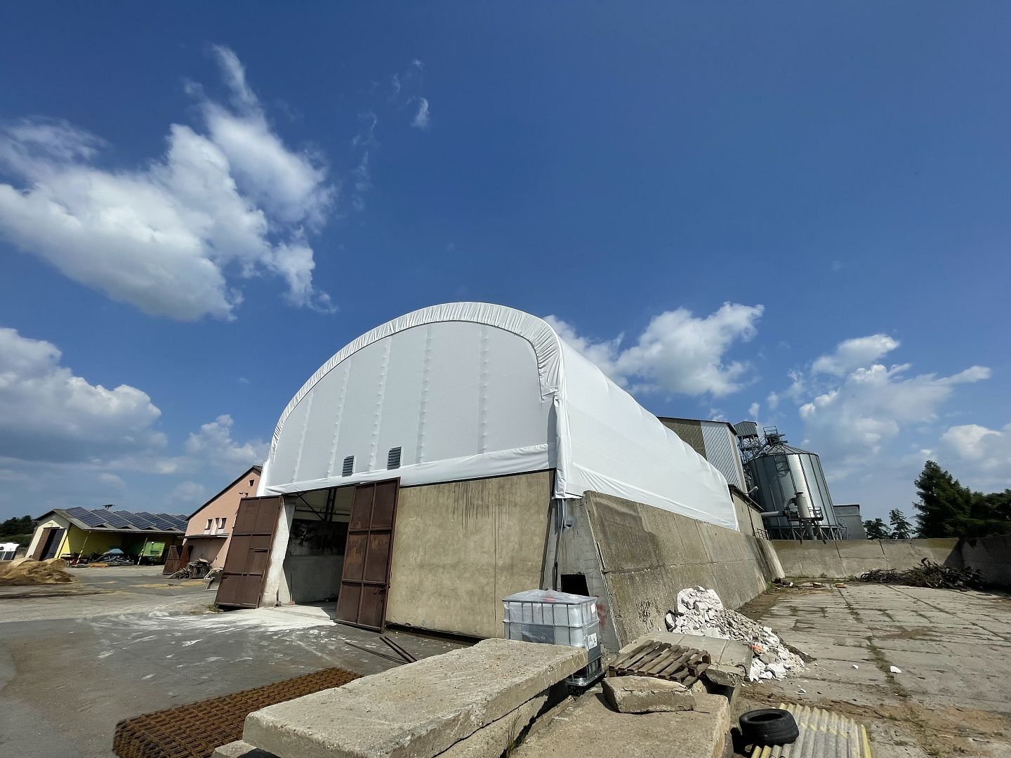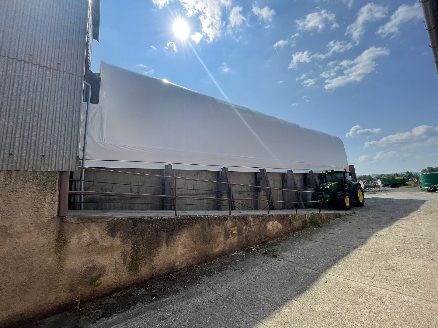 Staré silážne žľaby je možné využiť ako sklad krmiva alebo prístrešok pre dobytok. Tento silážny žľab je zastrešený konštrukciou EURO UT v tvare obráteného písmena U a opláštený bielou netkanou textíliou.
