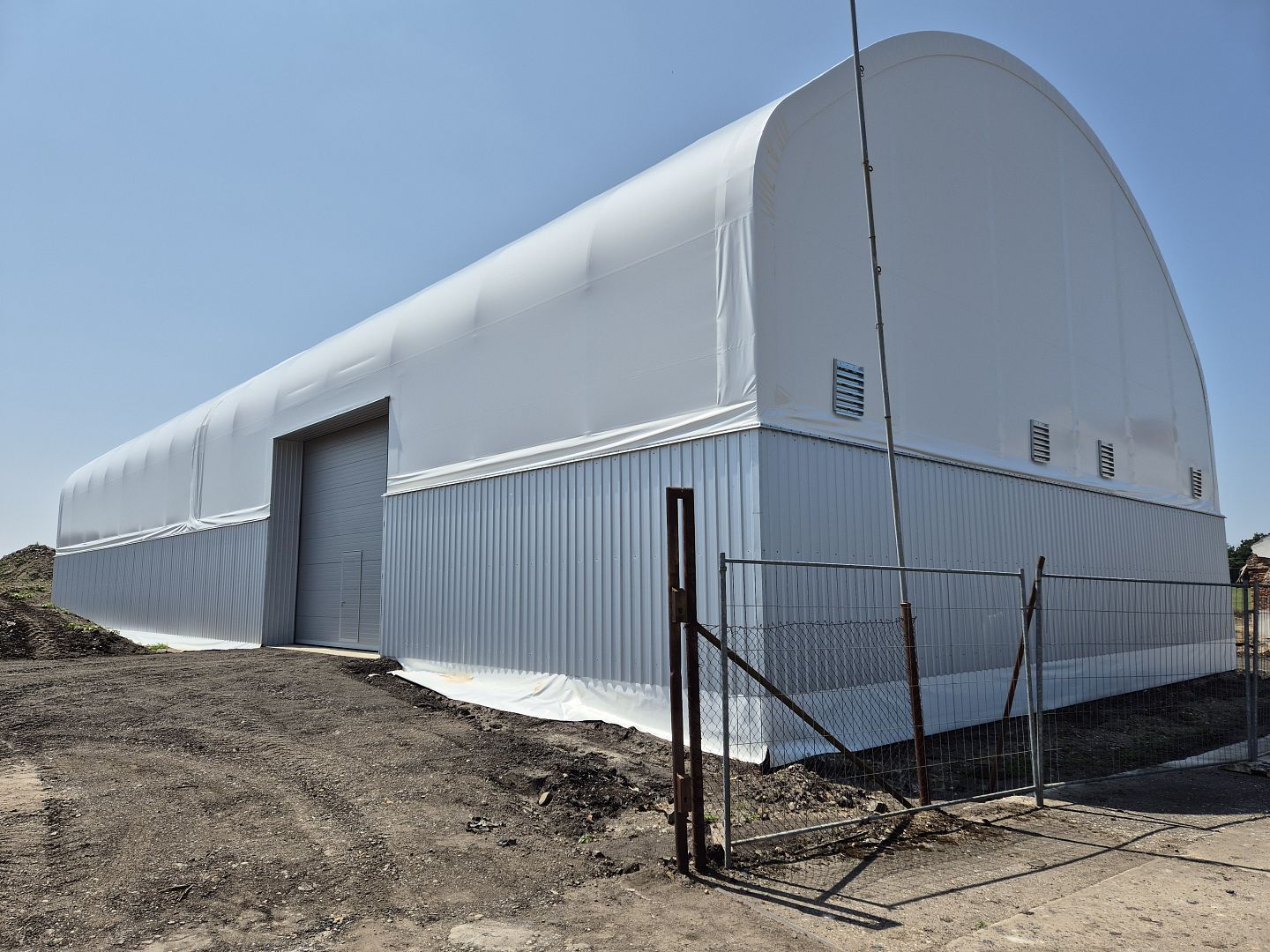 Poľnohospodárske skladové haly predstavujú praktické riešenie na uskladnenie krmív aj poľnohospodárskej techniky na jednom krytom a prehľadnom mieste. V obci Byškovice sme realizovali halu určenú práve na tieto potreby. Je postavená z ľahkej oceľovej konštrukcie typu UT, po obvode má plechové opláštenie do výšky 3 m a strecha je opláštená bielou PVC textíliou.